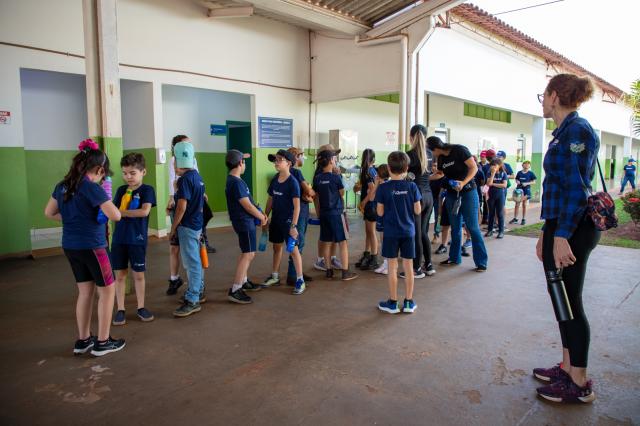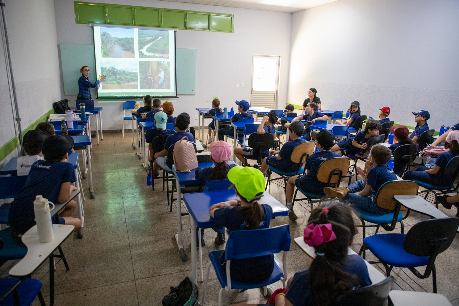 Durante a visita, os professores realizaram um momento especial em sala de aula, com o aprofundamento do conteúdo e discussão de temas como a importância do Bioma Cerrado para a produção de água doce, bem como, a importância da água doce para a agricultura, além de aprofundar sobre a importância da produção com sustentabilidade.