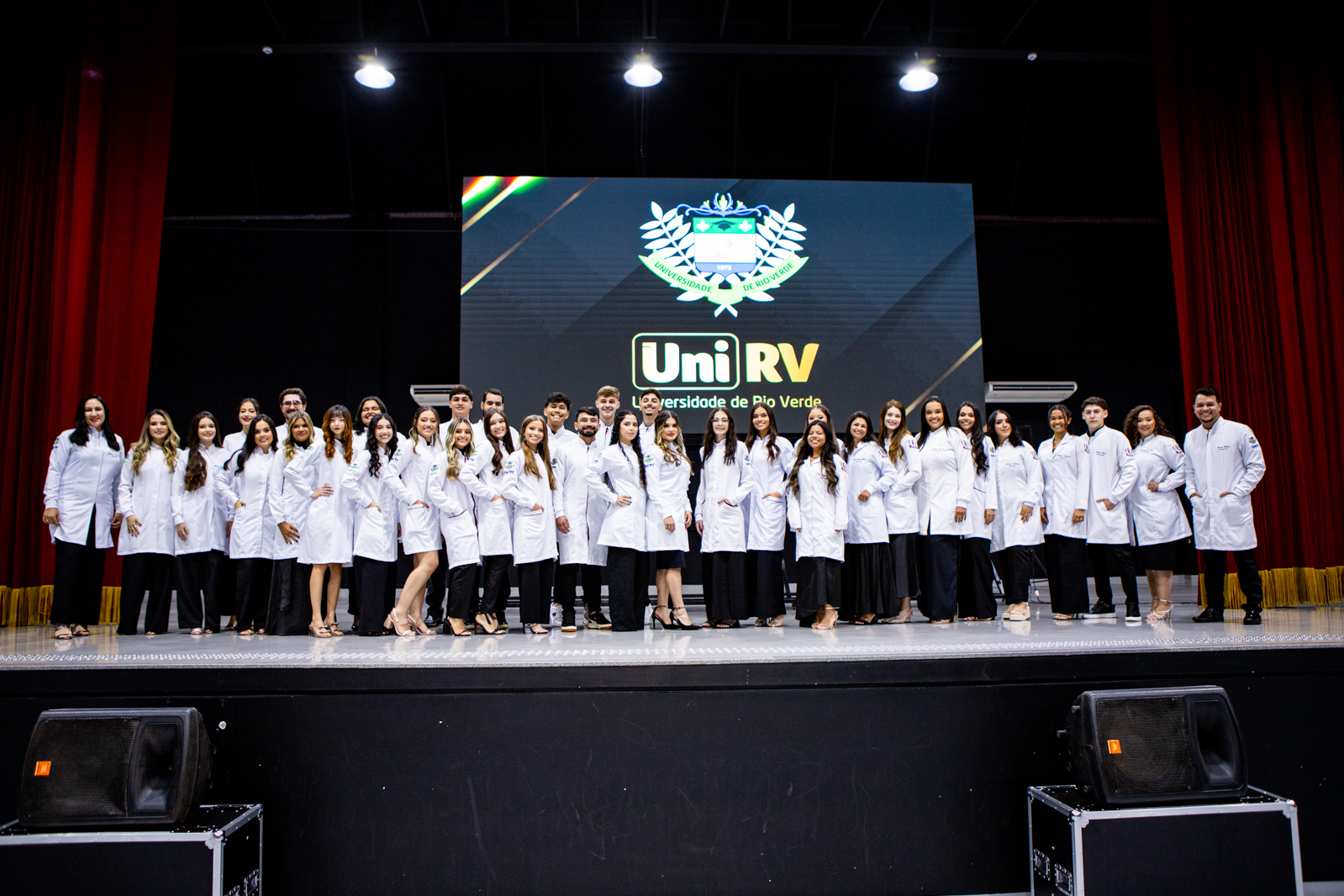 Por fim, a Pró-Reitora de Graduação, Professora Kênia, destacou o orgulho da universidade em acompanhar o início dessa trajetória. “A Cerimônia do Jaleco é o primeiro capítulo de uma história que será marcada por conquistas e superações. Este momento simboliza o compromisso da UniRV em formar profissionais completos, capazes de unir ciência, ética e humanidade. Que cada jaleco aqui vestido seja um lembrete diário da missão de cuidar e transformar vidas”, ponderou.