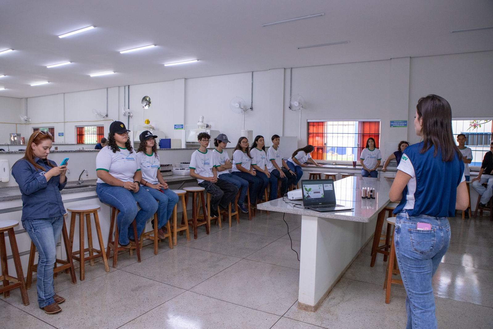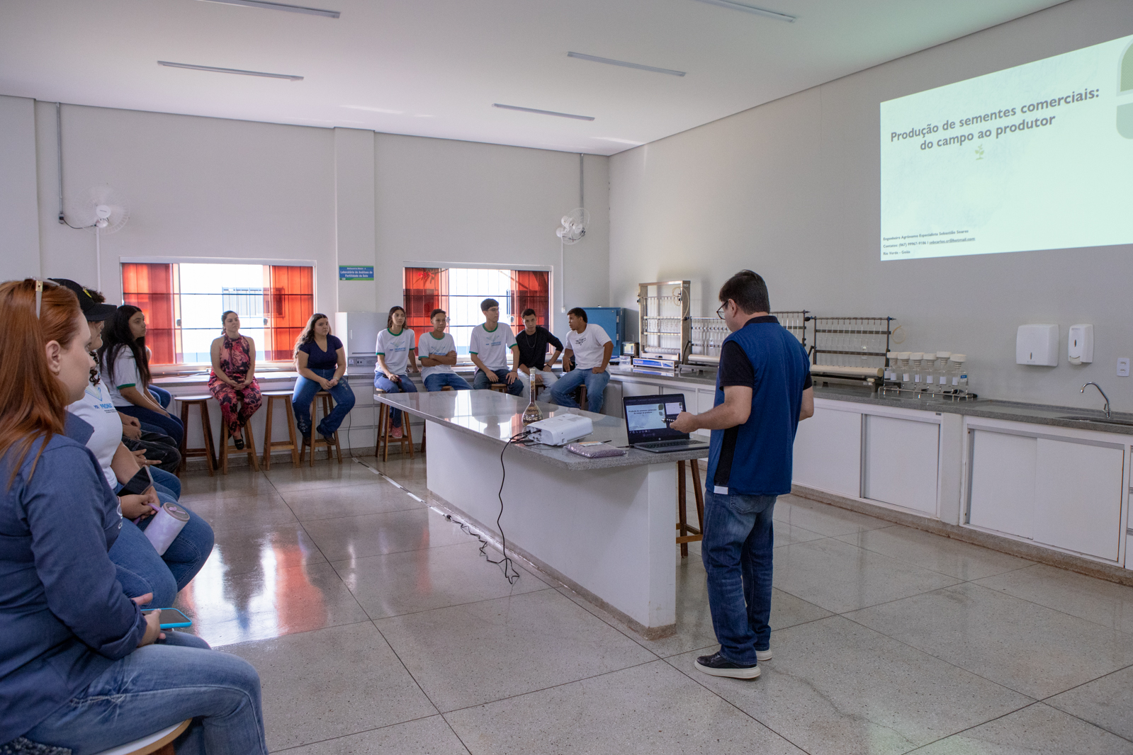 Nesta segunda-feira, os alunos do curso técnico em Agropecuária, do Pronatec participaram de uma tarde cheia de conhecimento. No Laboratório Multiusuários I, destinado às pesquisas da área das ciências agrárias, eles tiveram a oportunidade de aprender sobre o manejo de culturas em sistemas de cultivo, manejo de solos e proteção de plantas.