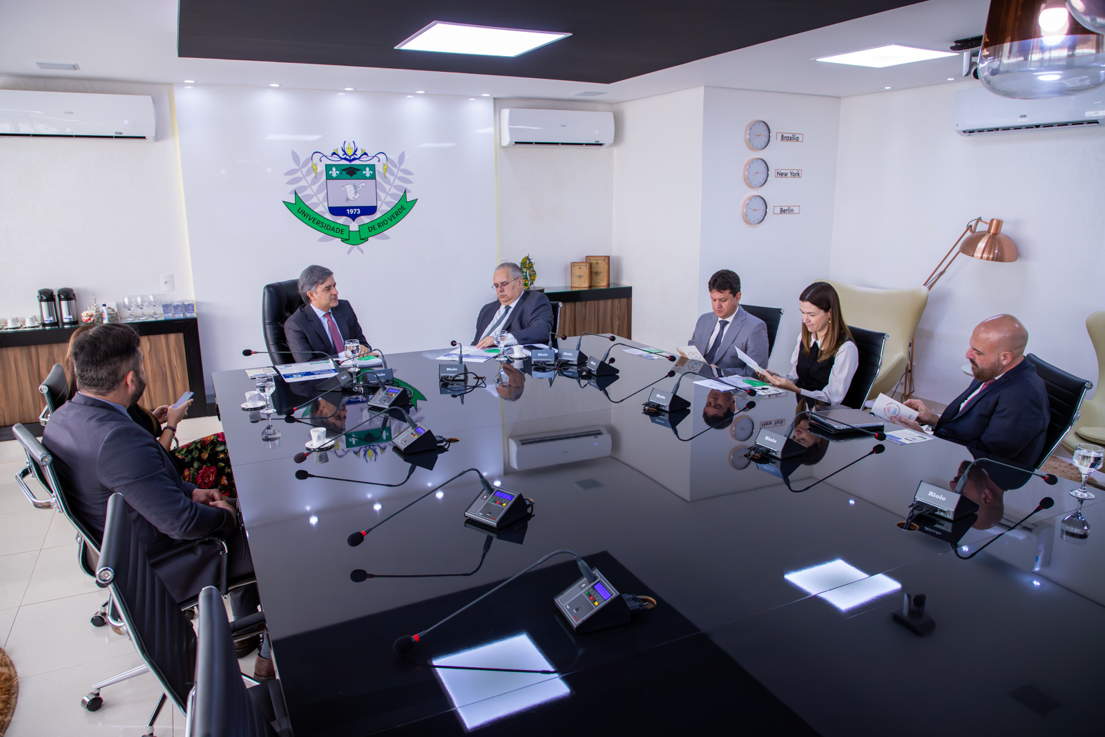 Também participaram da reunião com o órgão estadual, a Procuradora-Geral, Profa. Dra. Muriel Amaral Jacob; o Coordenador multi-campi, Prof. Me. Christiano Bittar e o gestor institucional, João Mário Vieira e Paula.